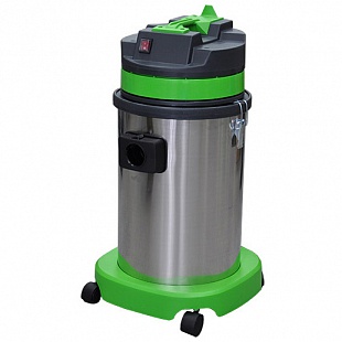 У этого однотурбинного пылесоса для сухой и влажной уборки - корпус из нержавеющей стали емкостью 30л. и диаметром 345мм. Бесшумный двигатель с большим сроком службы.