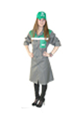 Сделан из гигроскопичной ткани "Грета" (51% хлопка, 49% полиэфира). Иммет водоотталкивающую отделку. Светоотражающая лента по верхней полочке халата и по спинке в виде канта.